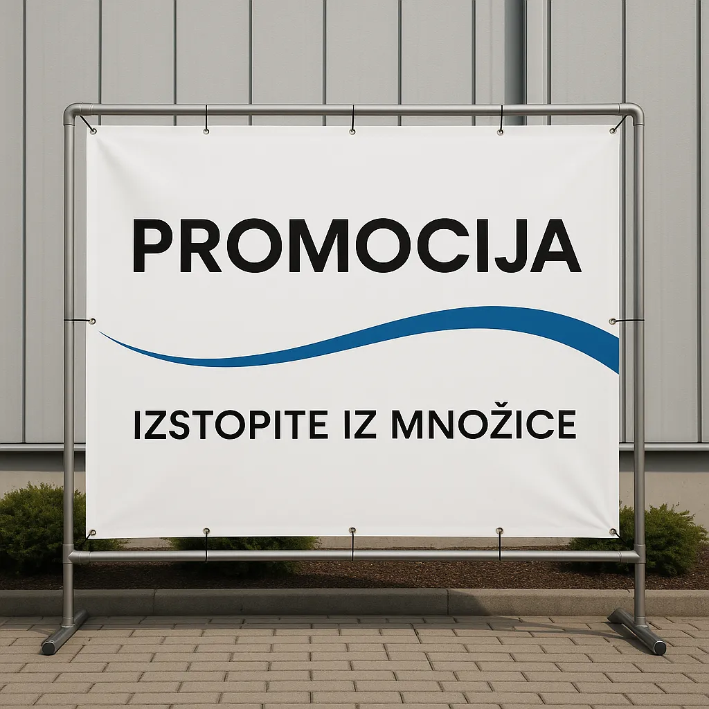 Odlični za dogodke, gradbišča ali oglaševanje pred poslovalnico. Vremensko odporni in vidni že od daleč – profesionalna izdelava z možnostjo poljubnega formata.